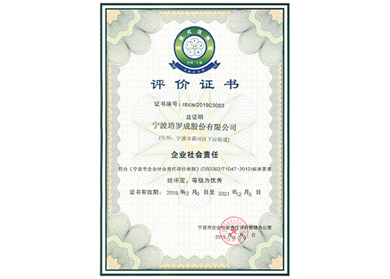 社會責任優(yōu)秀評價證書