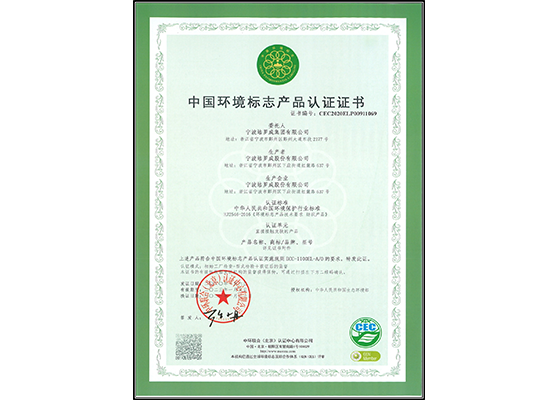 中國環(huán)境標志產(chǎn)品認證證書