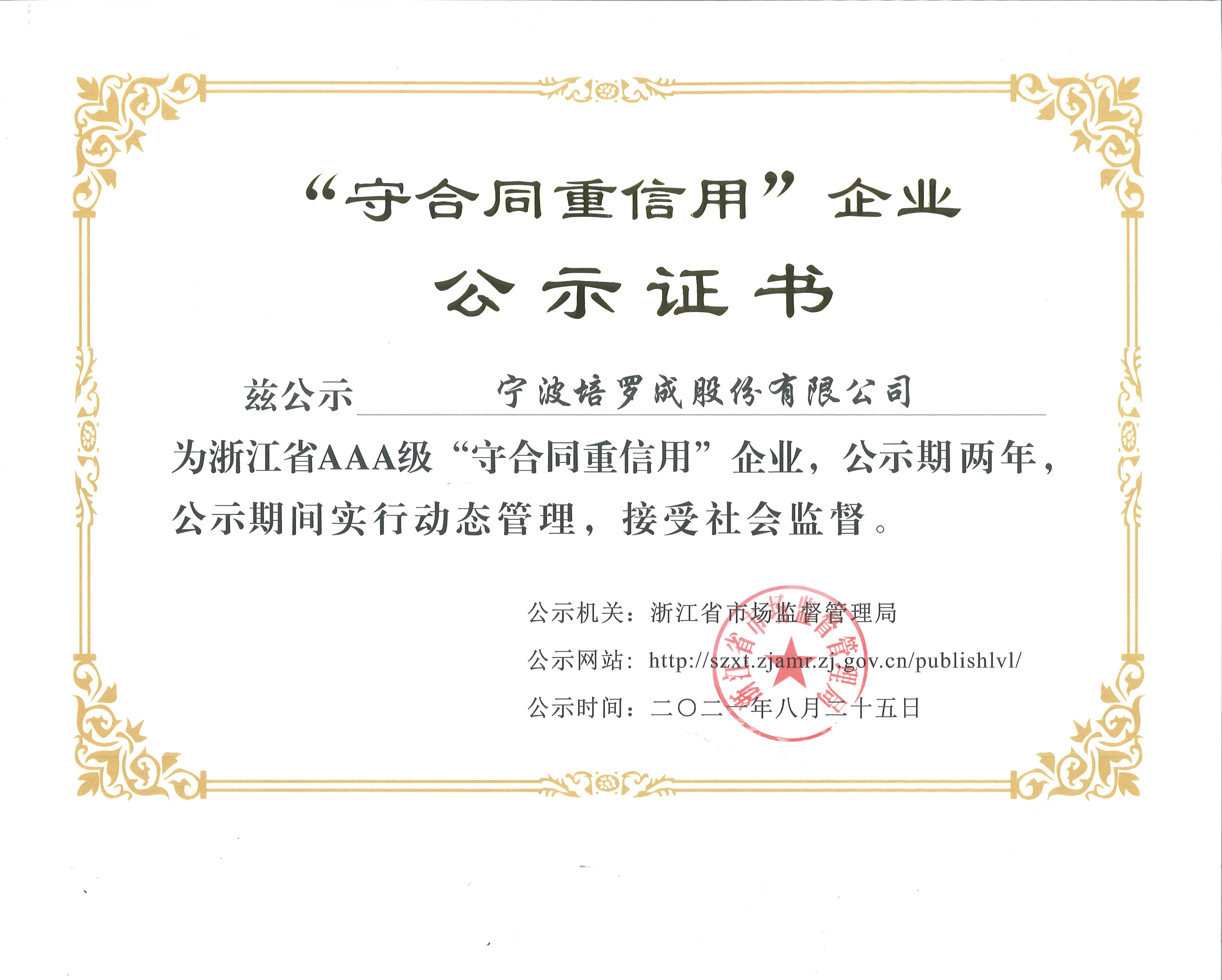 浙江省信用管理示范企業(yè)